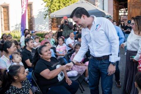 El gobernador, Mauricio Kuri González, y la directora del Instituto del Deporte y la Recreación del Estado de Querétaro (INDEREQ), Iridia Salazar Blanco, se reunieron con el exfutbolista profesional y