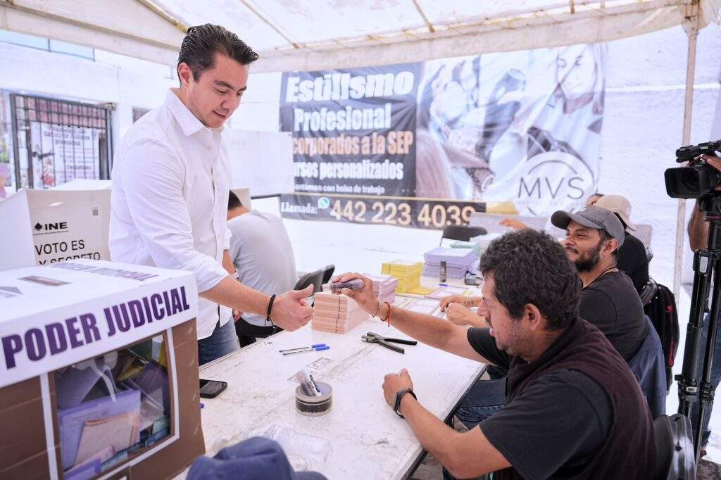 En el ejercicio de sus derechos como ciudadano, el presidente municipal de Querétaro, Felifer Macías, acudió a la sección 0467 en la colonia Burócrata para emitir su voto en las elecciones judiciales 2025. Durante esta jornada electoral, participó en la elección de Ministras, Ministros, Magistradas, Magistrados, Juezas y Jueces que integrarán las distintas salas del sistema de impartición de justicia.