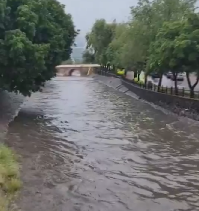 En el Centro de la ciudad de Querétaro también se han observado imágenes del aumento significativo del caudal, lo que mantiene la atención de las autoridades locales.