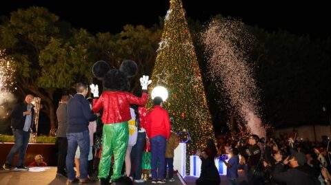 Entre música, luces y ambiente festivo, el gobernador Mauricio Kuri González, acompañado de su familia, del alcalde capitalino Felifer Macías y de funcionarios estatales, encabezó el tradicional encendido de la
