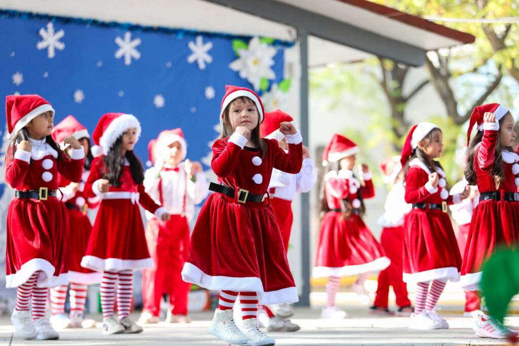 Cabe mencionar que las y los niños se vistieron con atuendos alusivos a la Navidad para presentar su espectáculo musical, donde bailaron y cantaron melodías como Jingle Bells, Sleigh Ride, Deck the Halls, All I Want, y Santa´s Coming to Town y Underneath the Tree, entre otros.