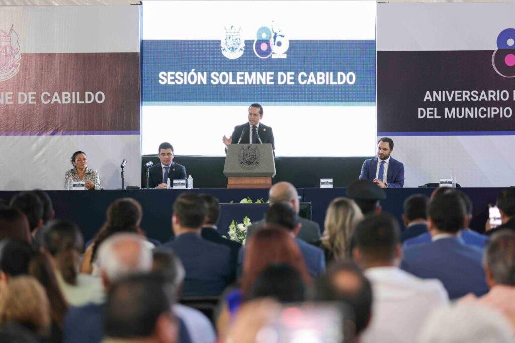 Durante la sesión solemne de Cabildo y acompañado por las y los regidores, el presidente municipal resaltó que, a 86 años de su creación como municipio, Corregidora es uno de los lugares con mejor calidad de vida en el país, gracias al trabajo y compromiso de su gente, convirtiéndolo en referente nacional en temas como seguridad, educación, transparencia, entre otros más.