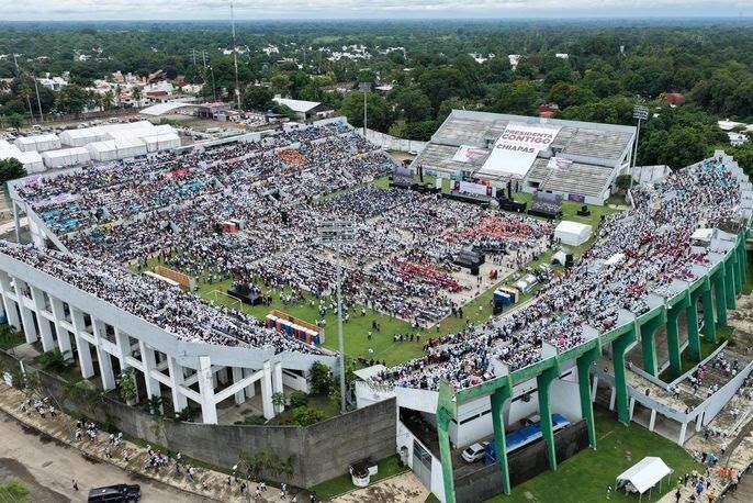 Del 19 al 21 de septiembre, Sheinbaum recorrió el sur y sureste, donde fue recibida por 156 mil personas en Guerrero (18 mil), Oaxaca (30 mil), Chiapas (40 mil), Tabasco (25 mil), Campeche (7 mil), Yucatán (9 mil) y Quintana Roo (27 mil).