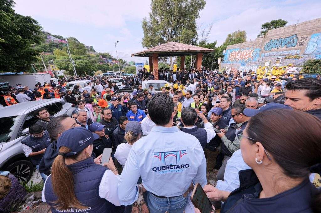 La mañana de este sábado, el edil encabezó recorridos en colonias como San Pablo, San Pedrito Peñuelas y Jardines de Querétaro, acompañado por el secretario de Gobierno, Erick Gudiño, y cuerpos de emergencia. En cada punto constató los trabajos de limpieza, desazolve de coladeras, retiro de escombros y apoyo directo a los hogares afectados.