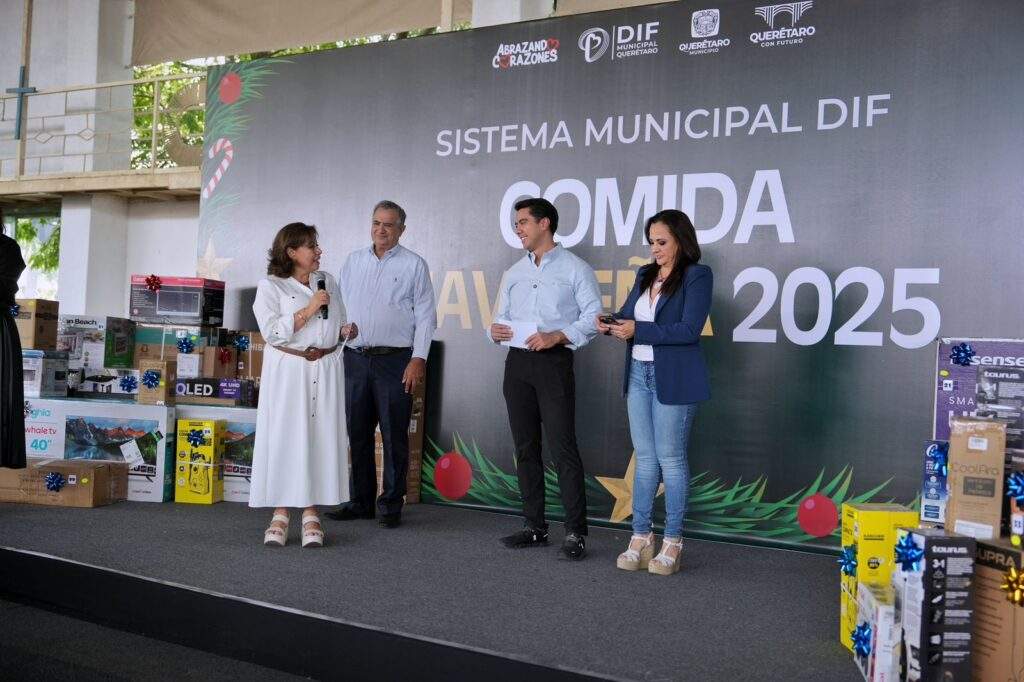El presidente municipal de Querétaro, Felifer Macías, acudió a la comida navideña del Sistema Municipal DIF junto con la presidenta del Patronato, Adriana Olvera de Macías. Reconoció el trabajo del personal que atiende a población vulnerable y afirmó que su labor sostiene el orden institucional para fortalecer familias y brindar acompañamiento digno.