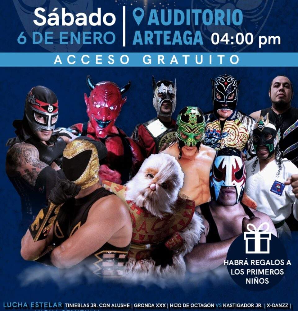 El Instituto del Deporte y la Recreación del Estado de Querétaro (INDEREQ), en conjunto con el Sistema Estatal para el Desarrollo Integral de la Familia de Querétaro (SEDIF), invitan a la población en general a la tradicional función de lucha libre de Día de Reyes, a celebrarse el próximo sábado 6 de enero en el Auditorio Arteaga (ubicado en Avenida Universidad 17C, Centro Histórico) a las 16:00 horas.