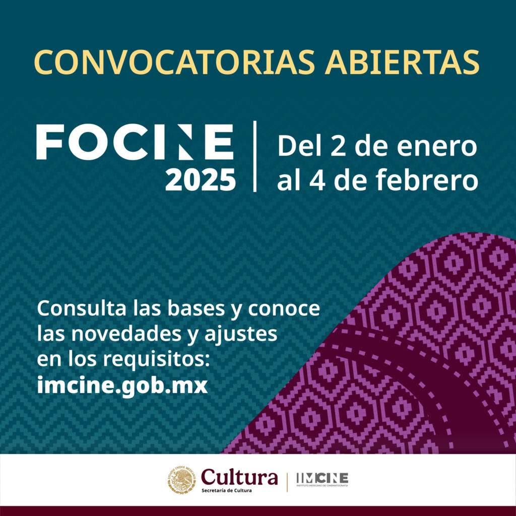 Los montos económicos y pormenores de las bases del FOCINE 2025 pueden consultarse en la página web del IMCINE, www.imcine.gob.mx