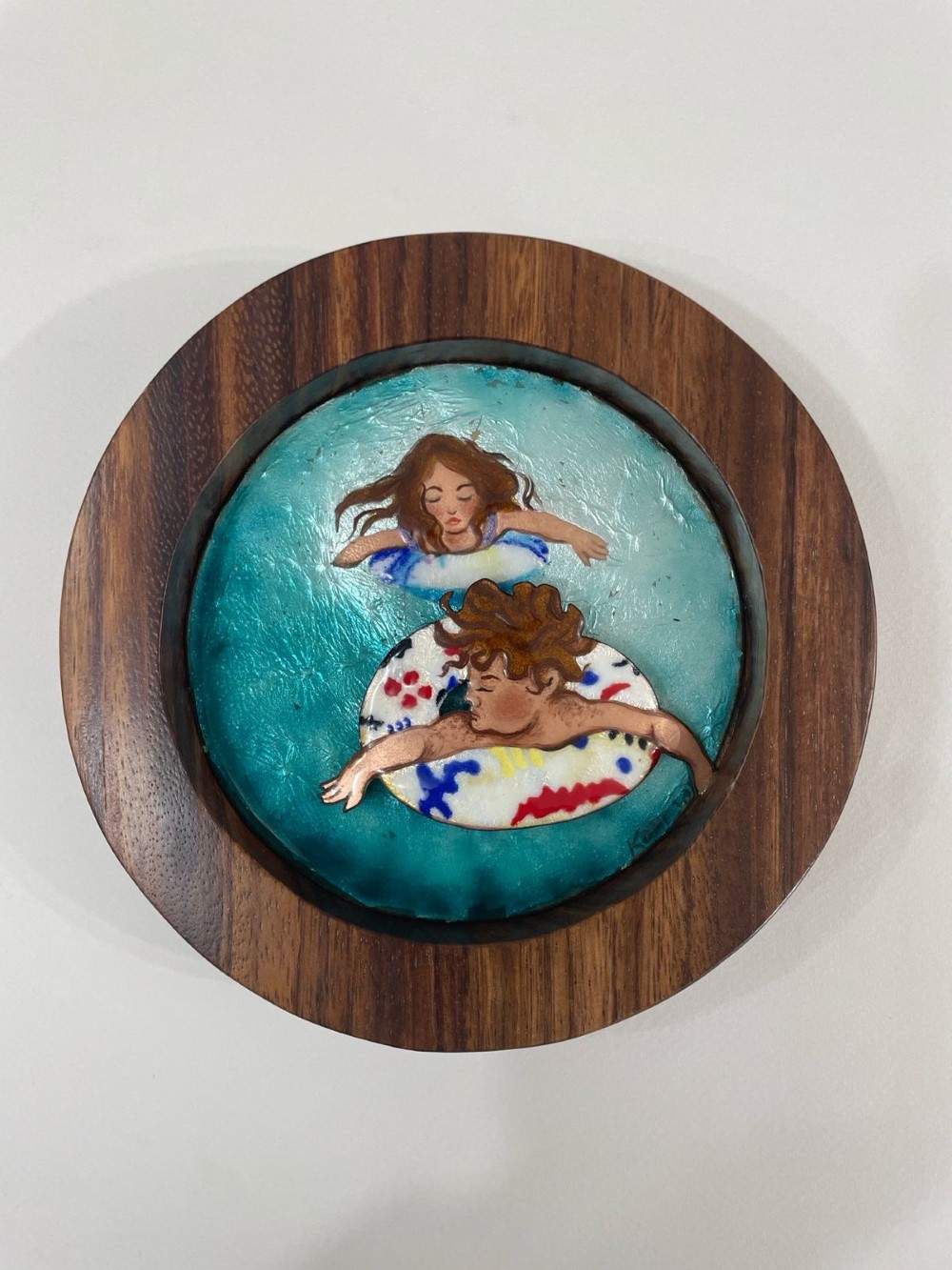 Dentro de la producción artística de Joshua Konejo la madre autónoma transmuta en brasa y por ello es que cada pieza de esmalte elaborada permite al fuego, que da forma al polvo vítreo, delinear los afectos, pero también los retos de la maternidad y de la realidad que habitan las hijas e hijos resilientes.