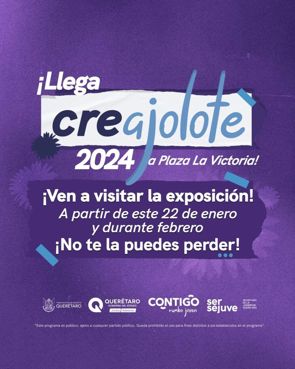 La secretaria de la Juventud (SEJUVE), Virginia Hernández Vázquez, dio a conocer que la muestra Creajolote 2024 llega a Plaza La Victoria, esto con el objetivo de dar a conocer el trabajo que realizaron 15 jóvenes artistas queretanos, quienes intervinieron piezas de cartonería en forma de ajolote, la mascota de la dependencia, para ello utilizaron diversas técnicas como pintura, esténcil, instalación eléctrica, escultura, acrílico, arcilla, óleo, moldeado en fomi, crochet, resina crista, entre otros.