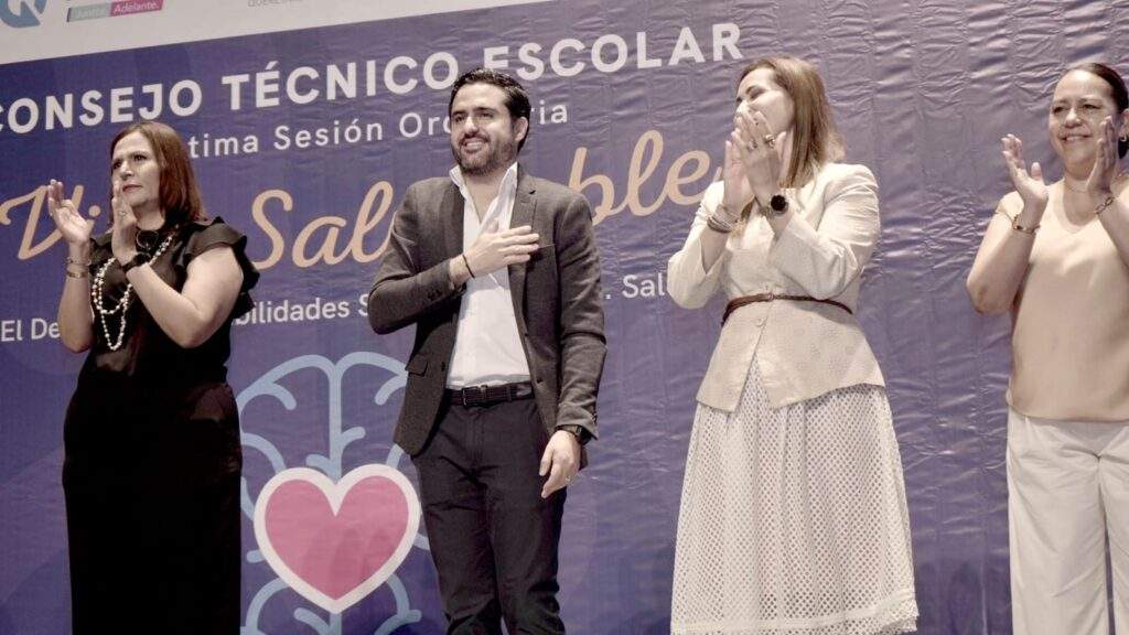 El Senador Agustín Dorantes Lámbarri participó en la apertura de la Séptima Sesión Ordinaria del Consejo Técnico Escolar, que bajo el título de Salud Mental, brindó información de apoyo al magisterio queretano para la contención emocional ante situaciones de crisis con sus estudiantes; así como para promover el reconocimiento y expresión de sus emociones.