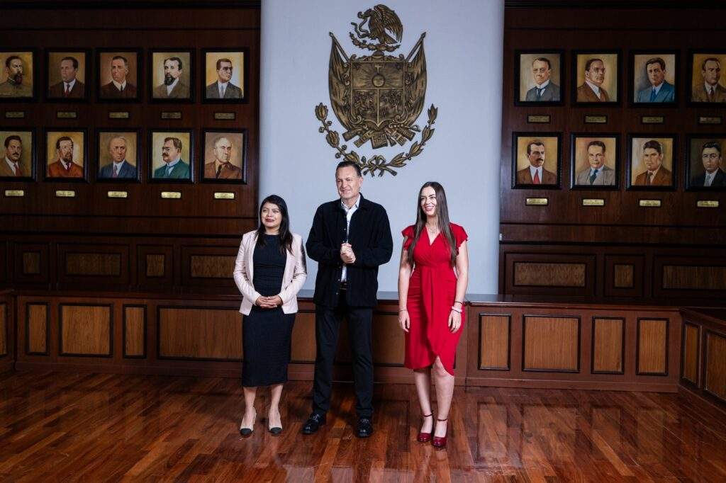 Querétaro.— El gobernador Mauricio Kuri González se reunió con Renata Valencia Kuri y Elizabeth Soto Peña, presidenta y directora de la asociación civil Seres Libres, organización dedicada a la protección de animales, especialmente burros y caballos carretoneros.