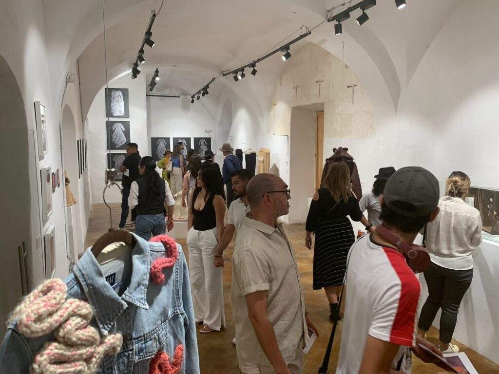 Otra de las exposiciones se titula “Cuerpo emocional: empatías fluidas”, de Mercedes Gertz, en la que la artista presenta de manera lúdica distintos atuendos hechos en estambre tejido, para hablar de los cuerpos que no se identifican con las estructuras binarias.