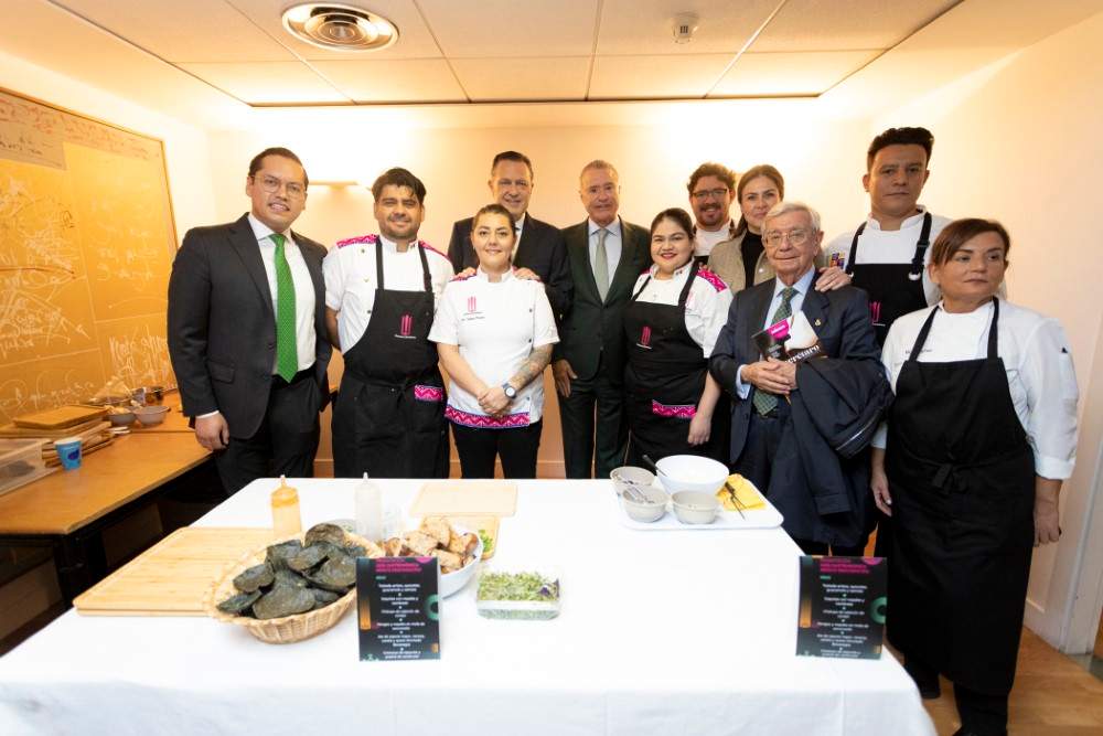Durante esta presentación, integrantes de la Asociación de Cocineros Queretanos ofrecieron a los presentes una muestra gastronómica de la cocina queretana, con platillos como la tradicional “Tostada de Arriero”, esquites con nopales y cactáceas; chalupas de salpicón de conejo, hongos y nopales en mole de xoconostle, ate de zapote negro, naranja, canela y queso ahumado; además de cremoso de tejocote y praliné de cacahuate.